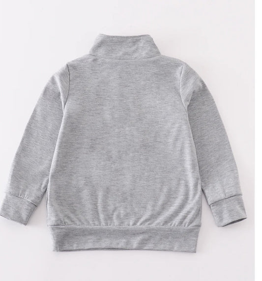 Mickey Character Grey Embroidery Zipper Pullover