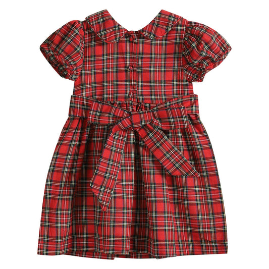 Red Christmas Plaid Santa Sleigh Smocked Dress