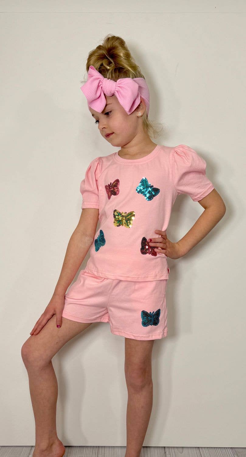 Cotton Blend....very soft & washes well This is an adorable boutique style set **Top measurements** 2T: 15.5" length & 9.5" chest, 3T: 17.5" length & 10" chest, 4T: 18.5" lengths & 10.5" chest, 5/6: 19.5" length & 11" chest, 7/8: 20.5" length & 12" chest **shorts measurements** 12-18m: 15"to 22" waist & 9" length, 2T: 16"to 24" waist & 10" length, 3T: 17"to 25" waist & 10.5" length, 4T: 19"to26" waist & 11" length, 5/6: 20"to 27" waist & 11.5" length, 7/8: 21"to 28" waist & 12" length 9/10: 22"to 30" waist & 14" length