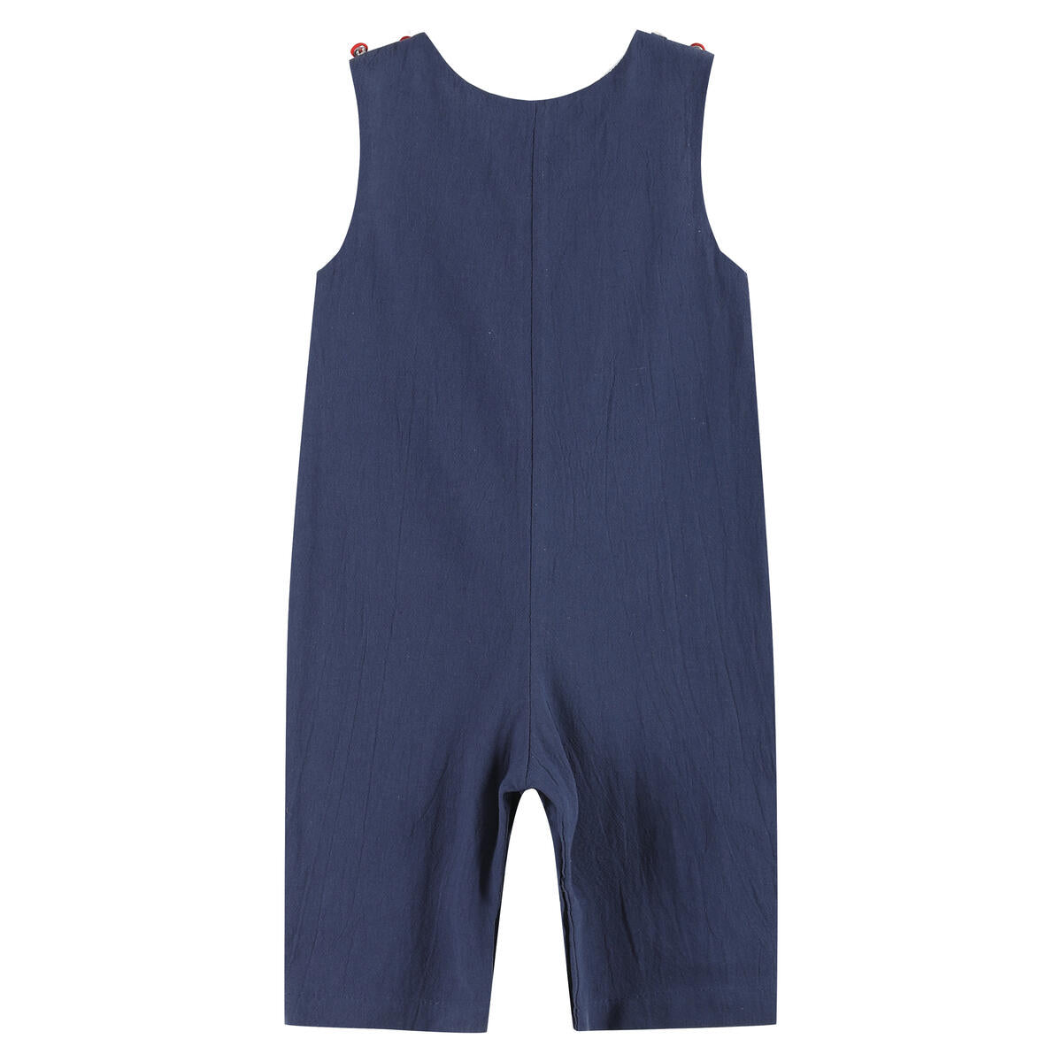 These festive navy blue Santa smocked overalls are made from the softest 100% cotton. They feature a charming Santa applique and delightful button detailing on the shoulders, perfect for quick changes with their easy-to-use buttons. Whether for trimming the tree or cozy family dinners, these overalls are the ideal choice for holiday festivities.