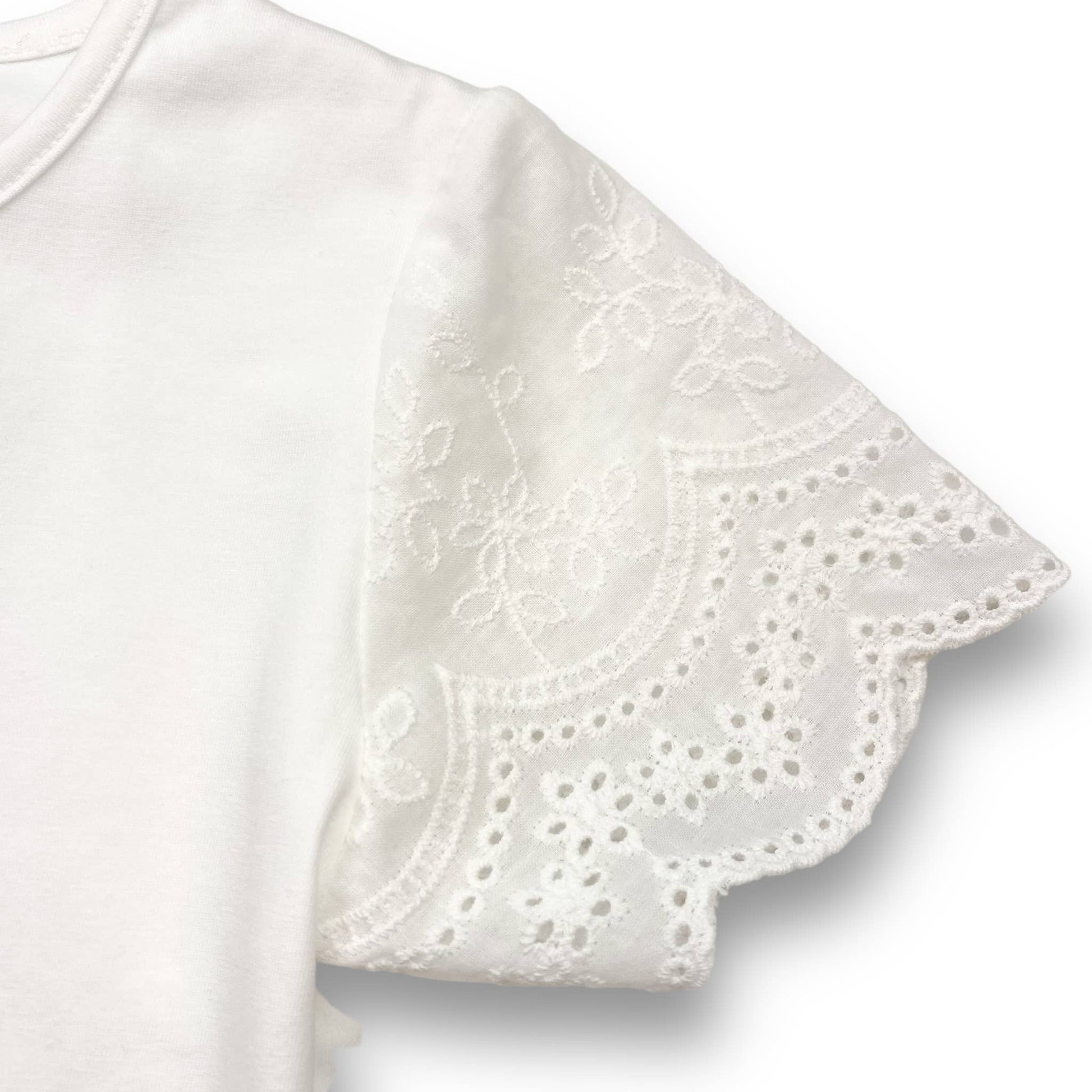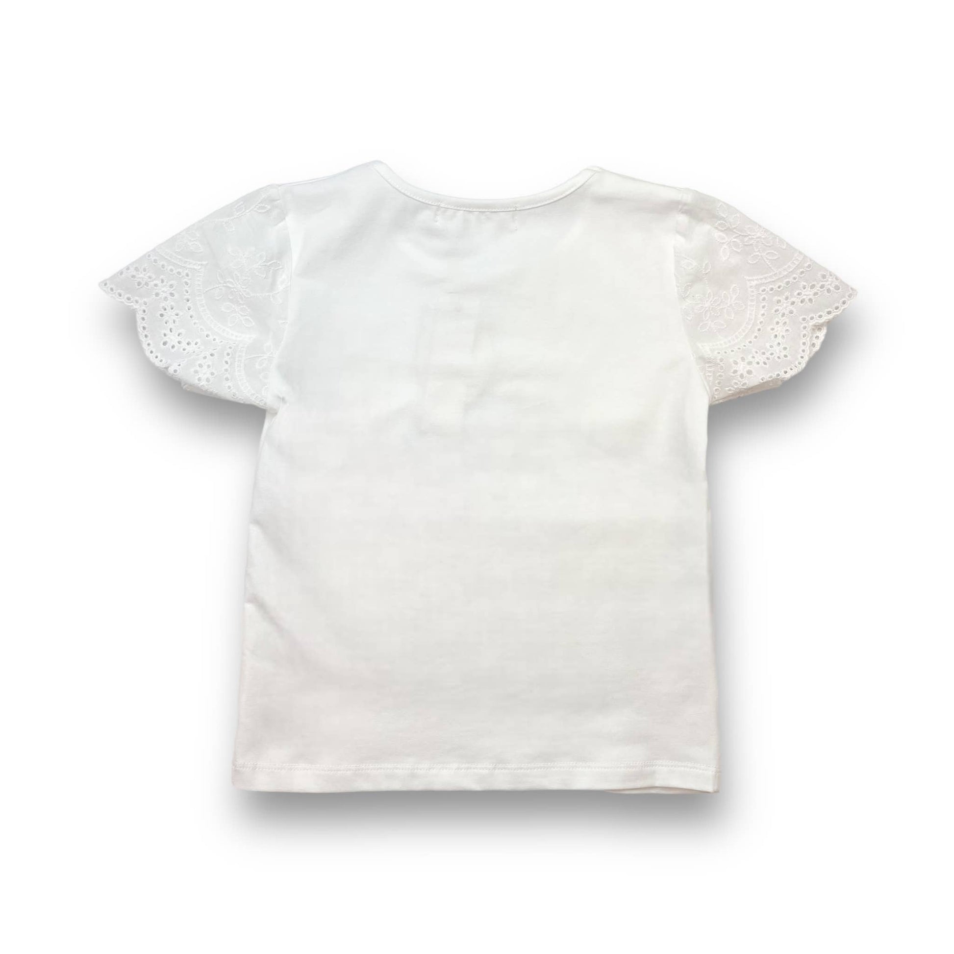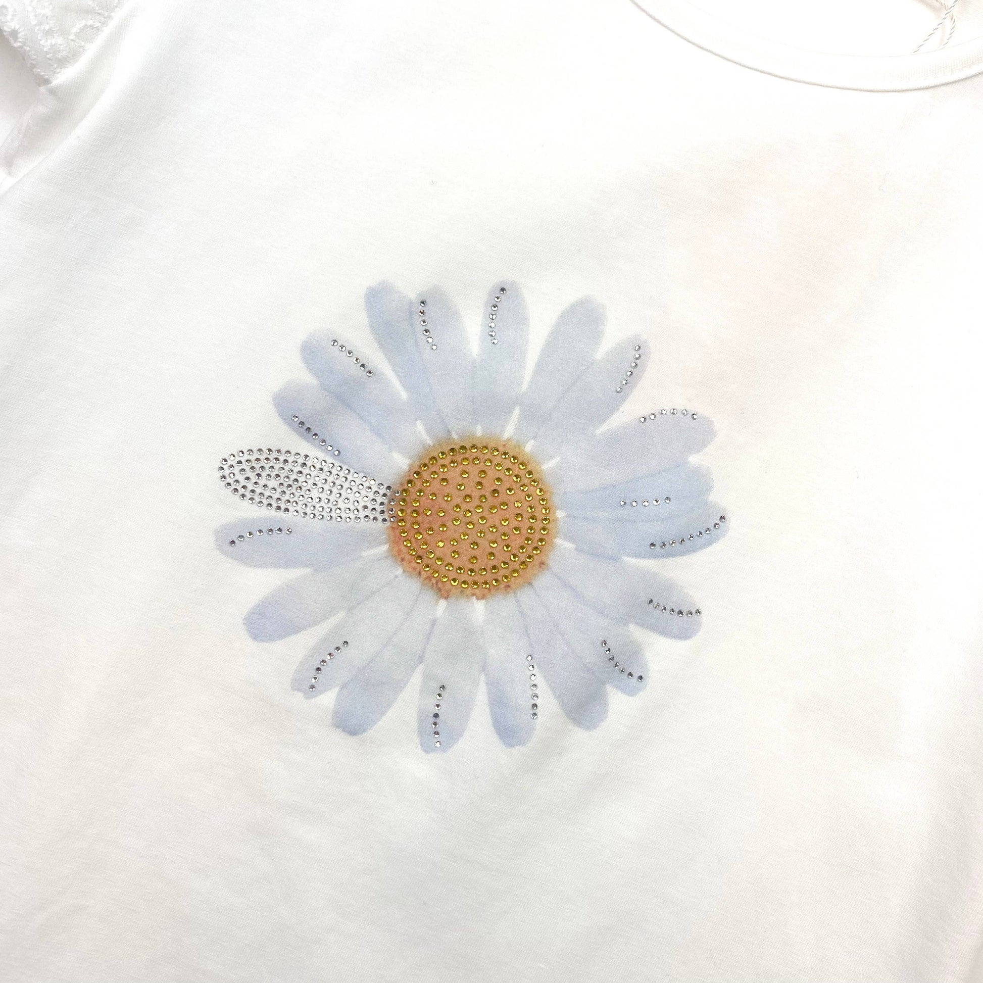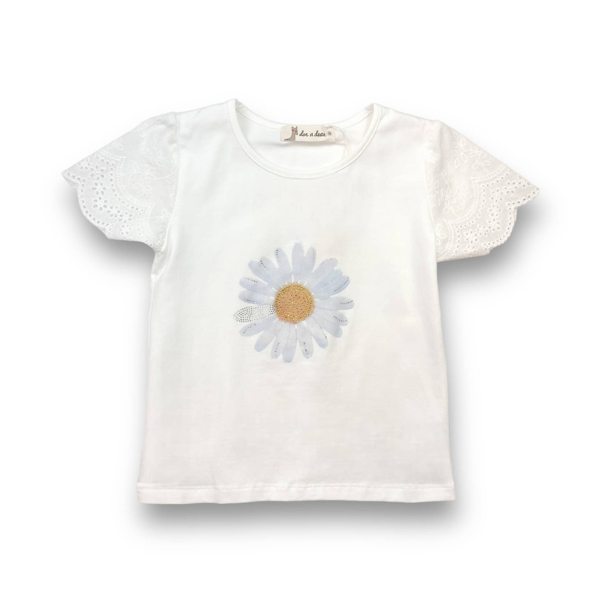 Introducing the S5 15257 Rhinestone Floral Print Lace Sleeves Tee by Doe a Dear. . This cotton-spandex tee, designed in Los Angeles, features delicate lace sleeves, adding elegance to the classic t-shirt. The floral print embellished with rhinestones will make your child stand out. With Doe a Dear, you get fashion-forward styles and high-quality merchandise for your child's wardrobe.