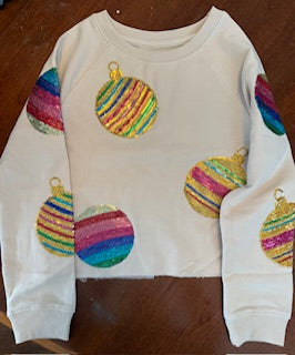 Your tween will love this all over sequin ornament sweatshirt. Rough edges make for stylish cut. Parchment shade.
